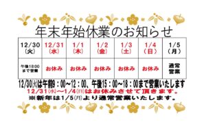 年末年始の営業のお知らせ